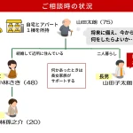 後見人等に多数就任中の経験を活かし、家族信託・遺言・後見等の仕組みを活用した「老後対策」「争族対策」「親なき後問題」について全国からの相談が後を絶たない。