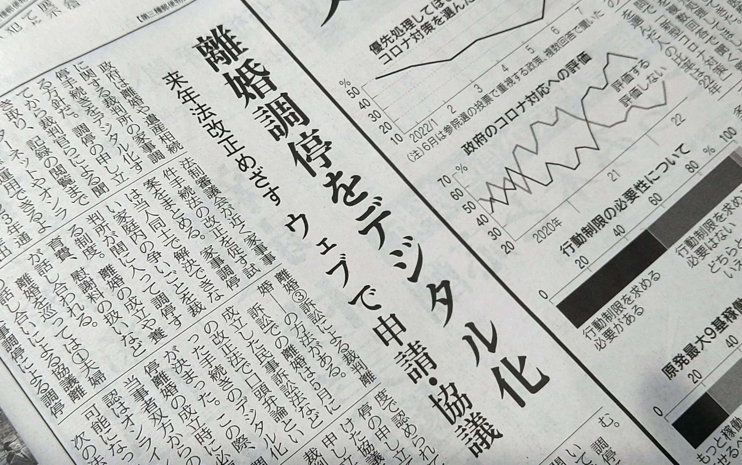 2022年8月1日付日本経済新聞朝刊によると、政府は、離婚や遺産相続に関する家事調停手続きをデジタル化(電子化)する「家事事件手続法」の改正法案の提出を2023年通常国会で目指すという。