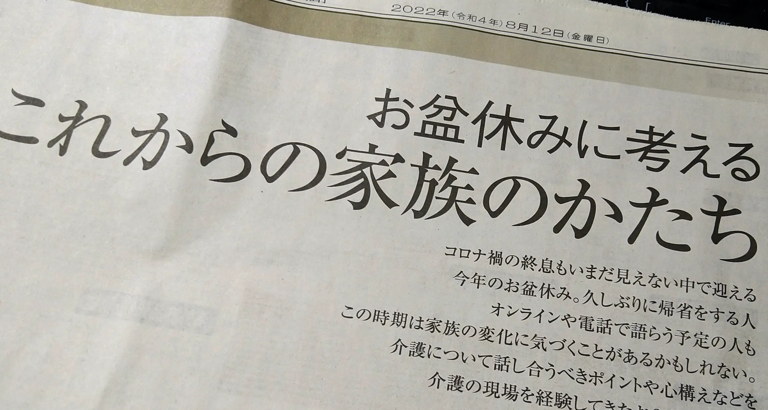 2022年8月12日の日本経済新聞に『お盆休みに考える これからの家族のかたち』というタイトルの記事広告が載っていた。