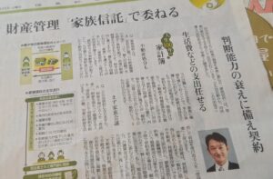 10/25付読売新聞朝刊の『人生100年の家計簿』という特別連載記事に「家族信託」の特集が取り上げられ、取材を受けた小生の顔写真も掲載されました。