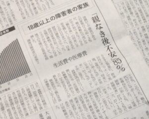 2026年2月13日付日本経済新聞の朝刊記事によりますと、18歳以上で障害がある人の家族のうち85.5%が、親が高齢化や死亡などで障害のある子の生活全般をサポートできなくなる「親なき後」の将来に不安を感じている、との日本財団のオンライン調査結果が出たとのこと。